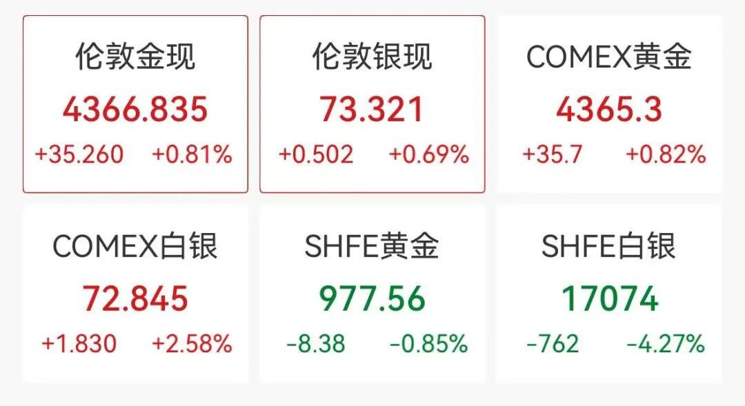北京时间1月5日早间,金银开盘直线拉升,截至7:20左右,现货黄金向上突破4366美元,涨超0.8%,现货白银涨近0.7%,COMEX白银大涨超2.5%。